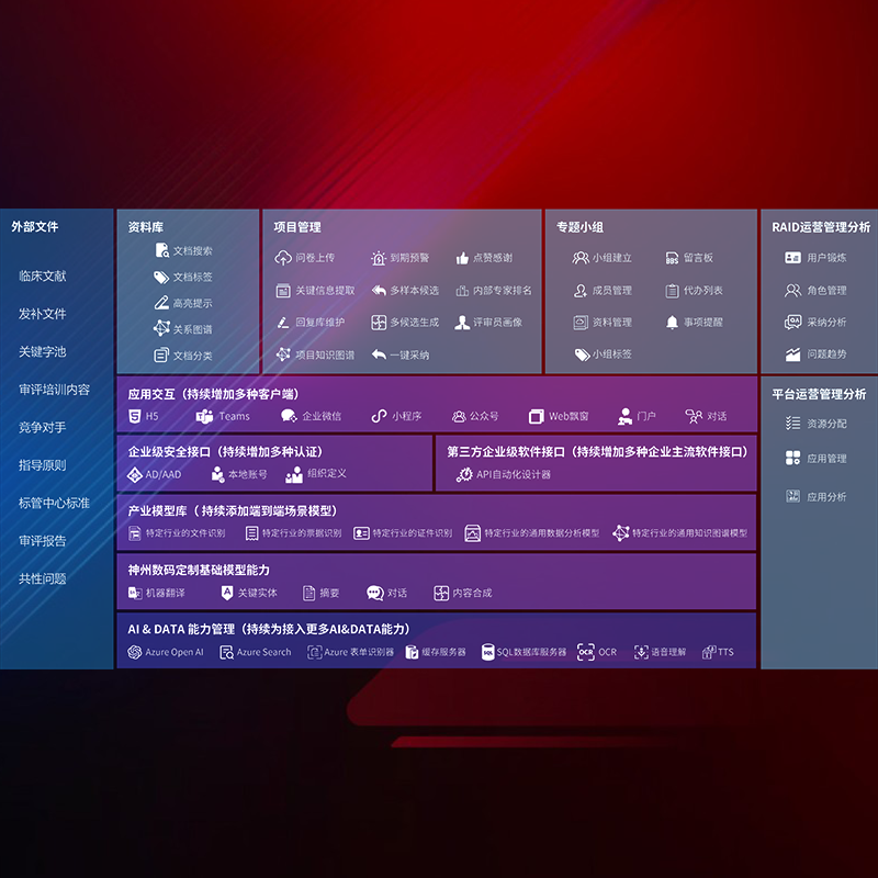 医疗器械产品上市前,,,,要熟悉严格与繁复评审标准,,,,整理分析监管机构指导文件中的海量信息。。。企业急需一个智能化解决方案,,,提升知识管理效率,,,,提高评审通过率,,,,以提升其市场竞争力。。。